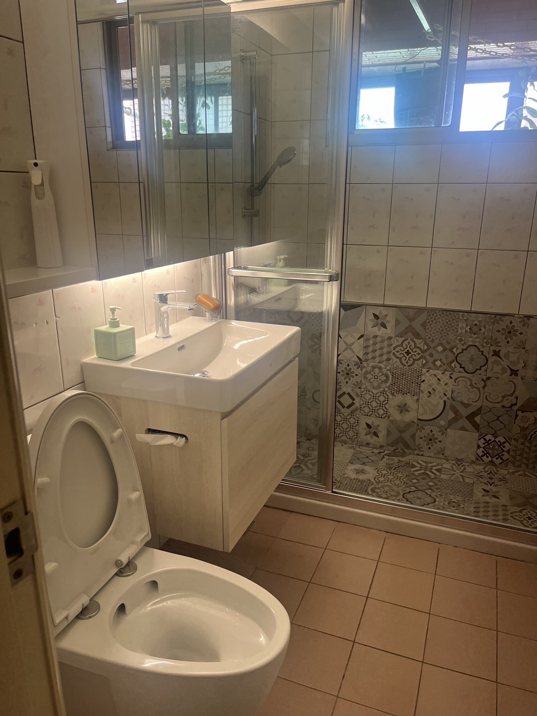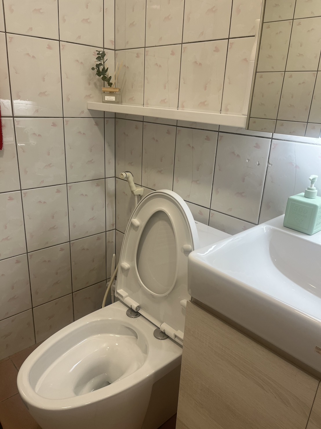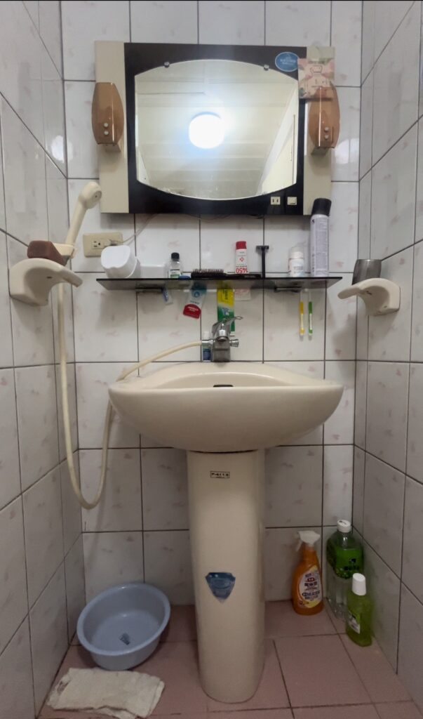 由於主浴的空間配置較為簡單,目前僅有馬桶和盥洗區域,整體功能相對單一。由於家中僅有客浴可以洗澡,在翻修過程中難免會帶來不便。