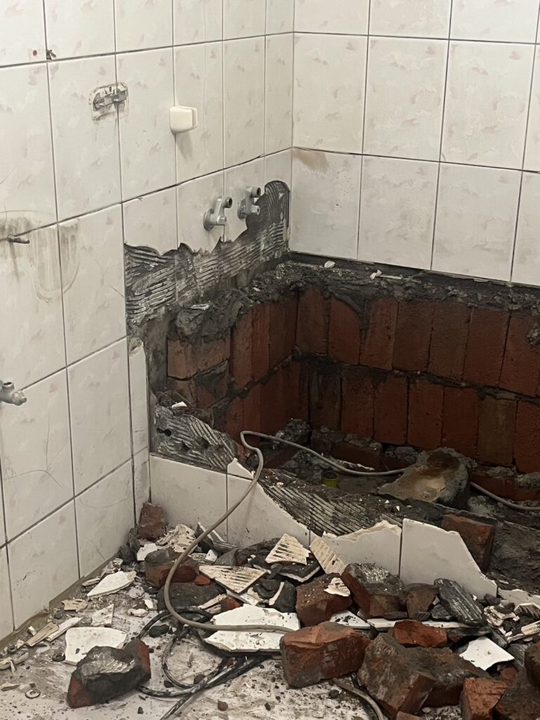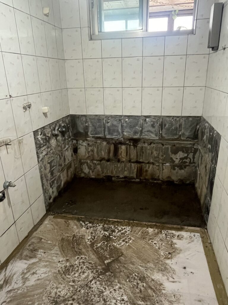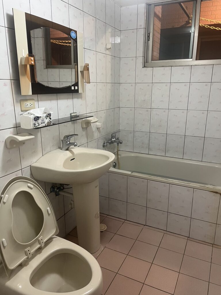 從上圖可以看出,浴室的設備已經顯得老舊,特別是浴缸的設計已經不再適合家庭中年長的成員。通常要拆除浴缸的部分會涉及到泥作敲修的工作。泥作工程不僅需要處理牆面和地面的拆除和修補,還要確保拆除後的空間能順利進行後續的乾濕分離設置,保持浴室整體的美觀與實用性。