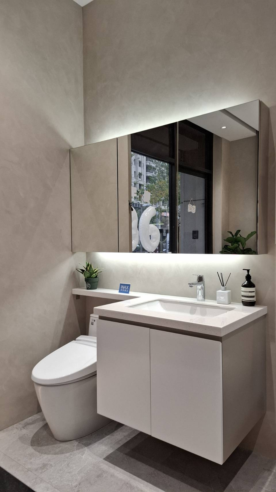 這款的訂製櫃為櫃體為厚奶茶、門片為平光白,採用雙門左衛生紙抽訂製櫃。