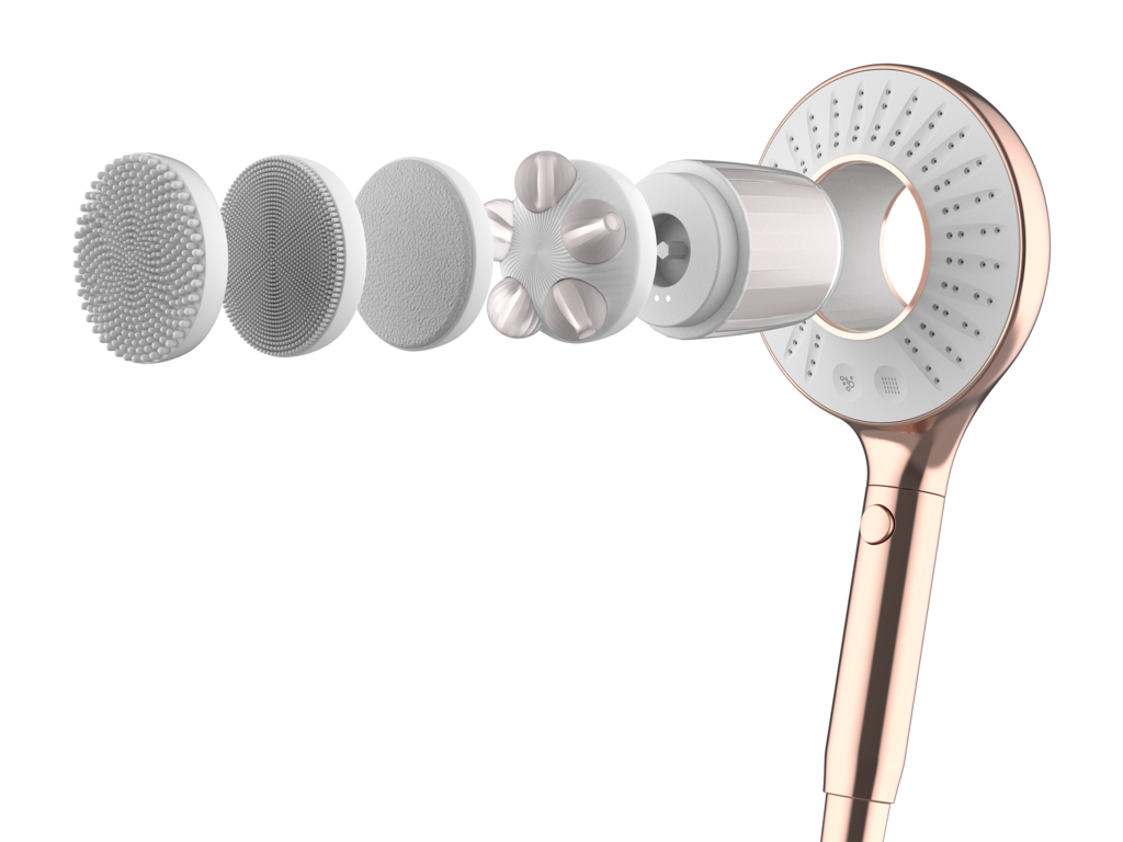 - 去角質刷:搭配MicroBubble 微氣泡水流,去除死皮,還原肌膚絲滑嬌嫩,三檔力度調節,適用於不同部位的去角質需求。使用去角質刷需根據自身皮膚情況,建議一兩週使用一次。